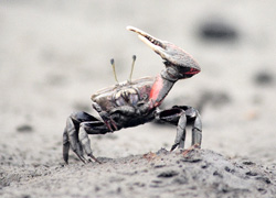 吉野川の河口域は、日本で最初に「東アジア・オーストラリア地域シギ・チドリ類重要生息地ネットワーク」に参加し、環境省の「日本の重要湿地500」にも選定され、さらに2010年9月には、ラムサール条約湿地潜在候補地となり、国内外において重要な湿地と認められています。汽水域から海域にわたる高度な生物多様性が確保されており、シオマネキやルイスハンミョウをはじめ、今や各地の干潟から姿を消しつつある生物が、当たり前に見られる場所です。また、ホウロクシギやズグロカモメなどさまざまな渡り鳥が訪れ、ヘラシギ、クロツラヘラサギは、定期的に飛来しています。